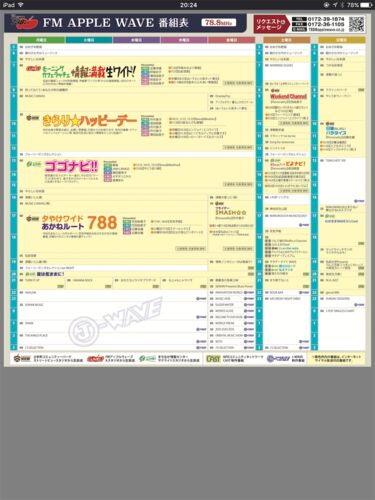 こちらは、自分も『わがままWAVE It's Cool!』(日曜17時)で参加している弘前市のコミュニティFM、FMアップルウェーブのタイムテーブル。10月3日夜の段階のものです。 PDFはこちら。実はこちらは最新のものではなく、9月末に配られたフリーペーパー掲載分が…