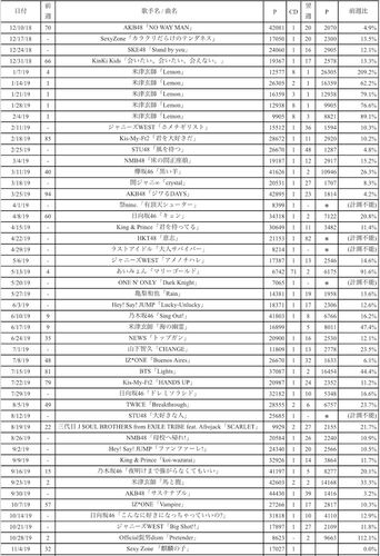 ビルボードジャパンソングスチャートのトップ5にランクインした楽曲のうち、シングルCDセールスのみがトップ10入り(他指標は全てトップ10未ランクイン)したものはロングヒットせず翌週急落、果ては1週で100位圏外となるものが多いため、【チャート構成比に占…