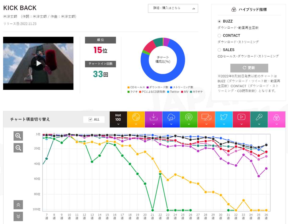 ② 米津玄師「KICK BACK」をはじめアニメソングのヒットが多数登場