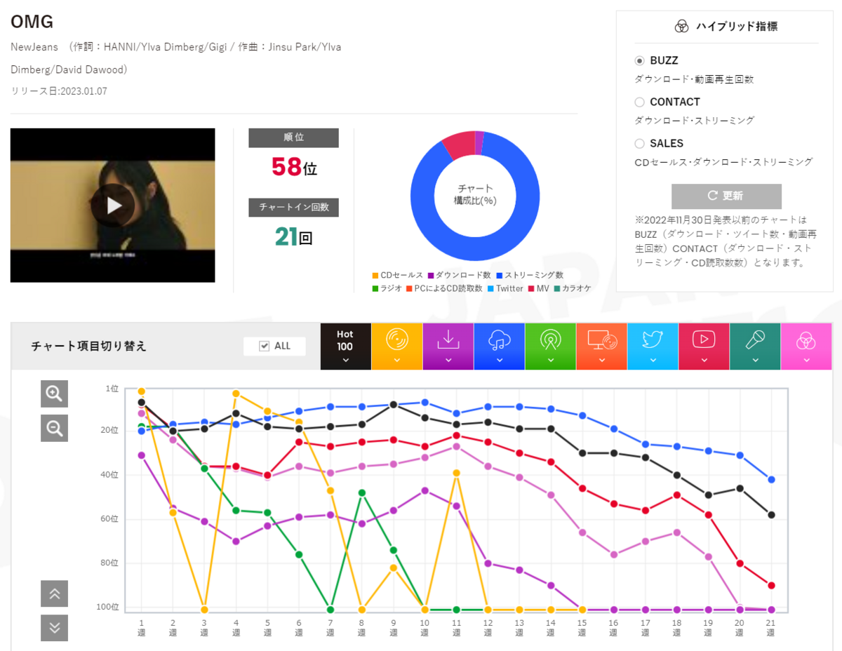 なお今回紹介する曲およびアルバムのCHART insightはいずれも、2023年5月31日公開分(上半期最終週)までの最大30週分となり、CHART insightにおける順位やチャート構成比は5月31日公開分のそれを指します(なお一部を除きます)。