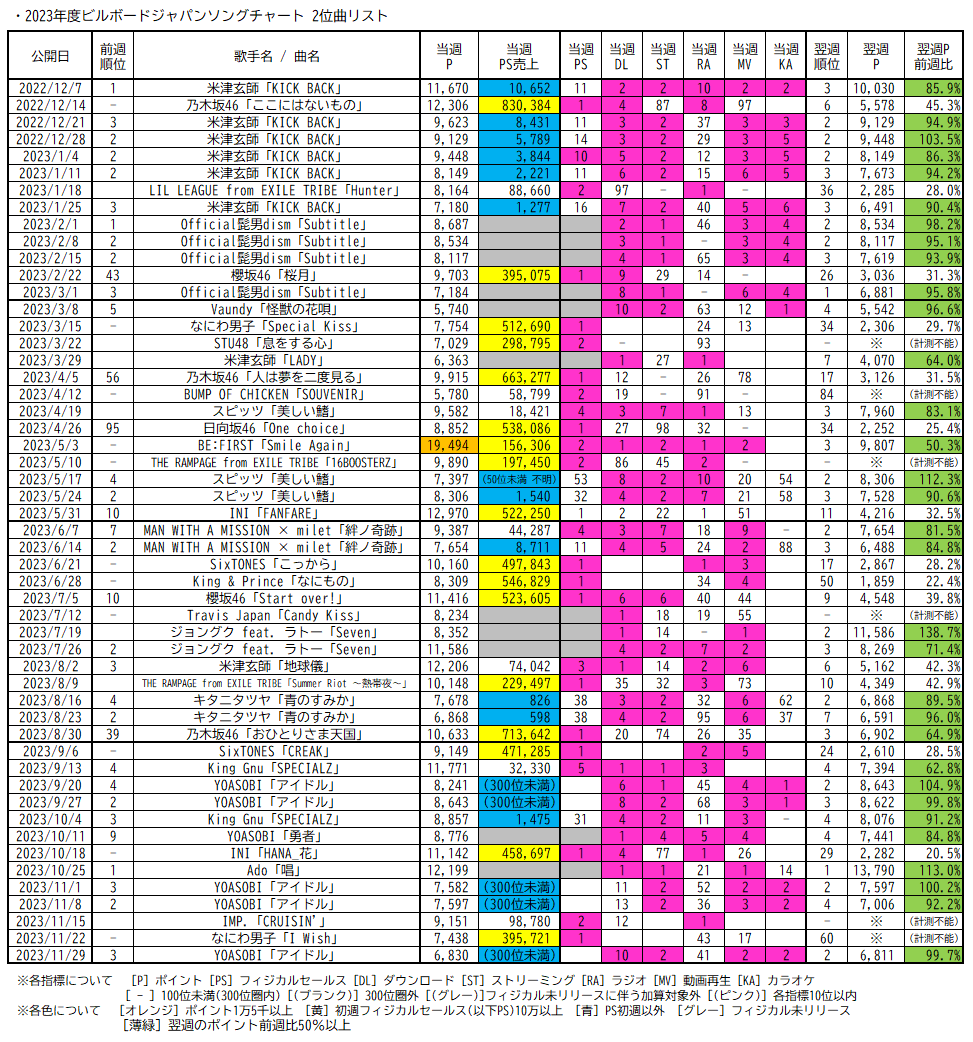 【ビルボードジャパンのCHART insightについて】(続き)