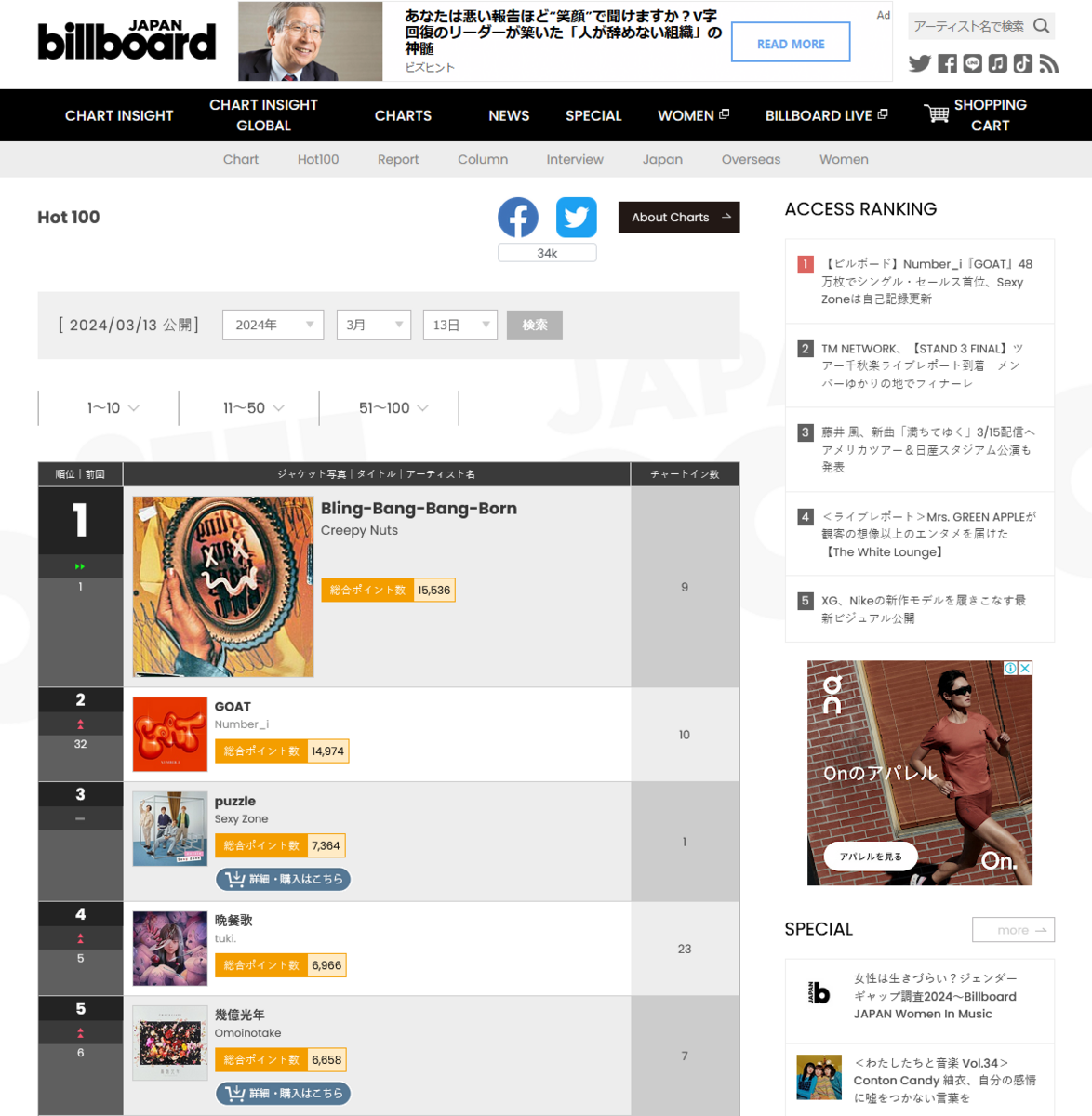 — Billboard JAPAN (@Billboard_JAPAN) 2024年3月13日