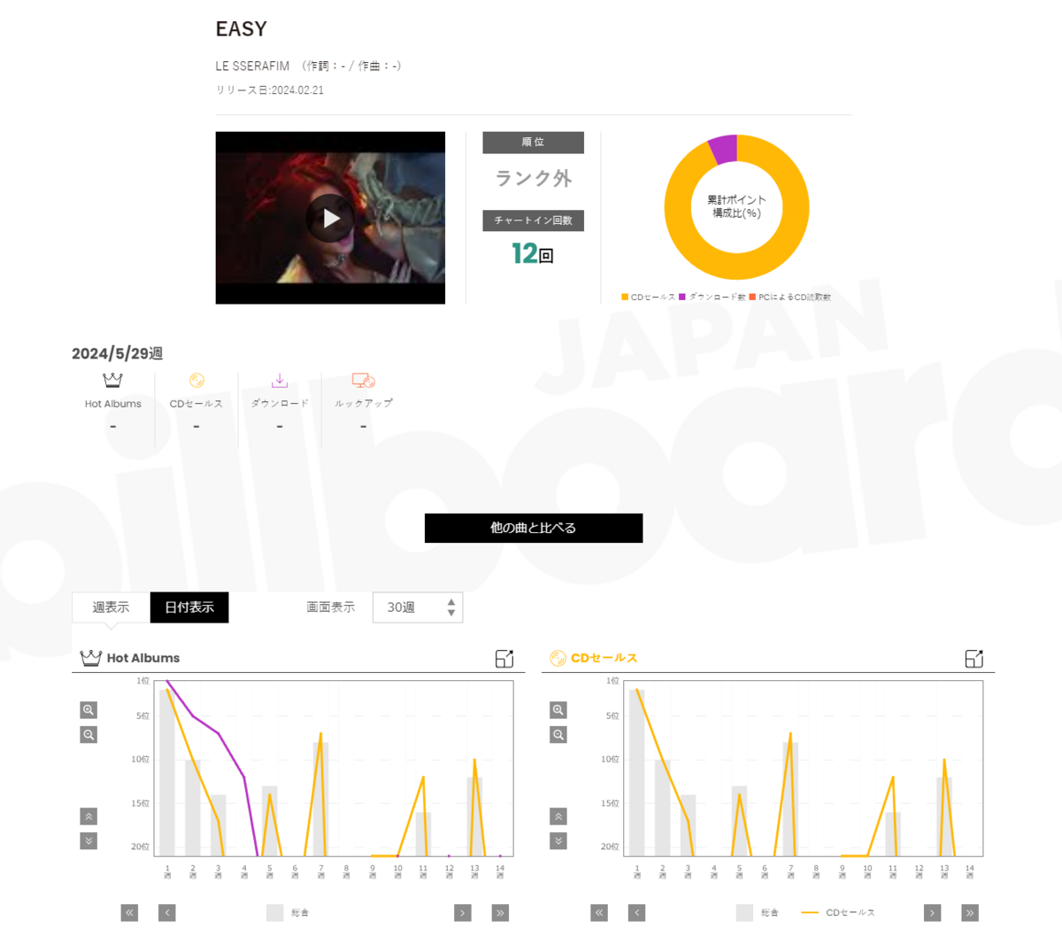 ※ 総合順位は黒、フィジカルセールスは黄色、ダウンロードは紫で表示。